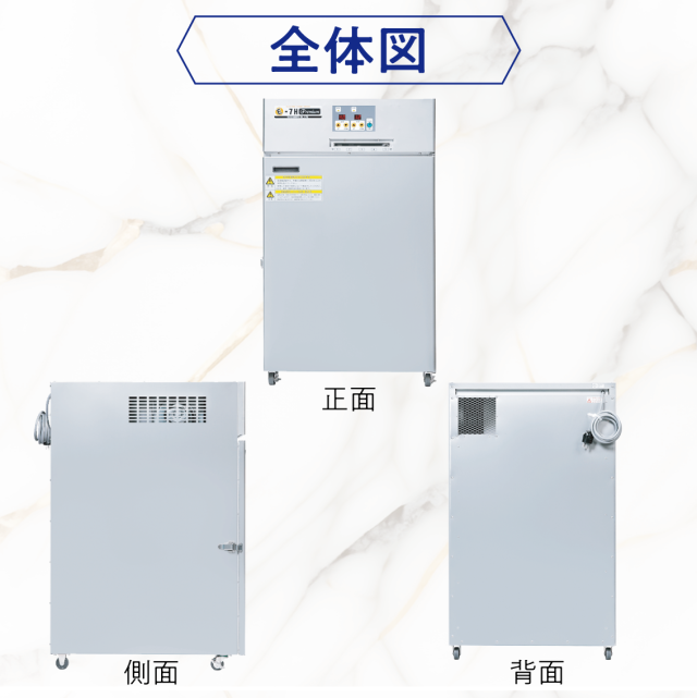 ○海産物や塩分濃度の高い対象物の乾燥に強いステンレスSUS304を採用。