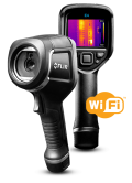 〇 E5-XT~E8-XTはE5~E8 WiFiモデル性能向上によるモデルチェンジ品です。※E4 WiFiはモデルチェンジなし。 [サーモグラフィFLIR E4/E5/E6/E8 WiFiの特長] 革新的といえるスーパーファインコントラスト(MSX)を標準装備し画像が鮮明 標準装備のソフトウェアFLIR Toolsによりピクセル単位の温度情報解析が可能 焦点をあわせる必要がなく、対象物を熱画像でとらえるだけで、正確な温度計測が可能。 熱画像の温度分布表示により、対象物の温度分布を視覚的に見ることができ、温度異常を特定が可能。 (FLIR E4 WiFi=4,800画素、FLIR E5-XT=19,200画素、FLIR E6-XT=43,200画素、FLIR E8-XT=76,800画素) 赤外線カメラで撮影した熱画像は、画素の数だけ温度情報を所持。 最小焦点距離500mmフォーカスフリー 超小型・軽量(575g)で携帯が容易 連続稼働約4時間の長時間バッテリー搭載 測定温度範囲-20~+550℃ ※E6-XT、E8-XTの場合 3インチ高解像度LCDディスプレイ(320×240ピクセル)を装備 キャリングケースは堅牢な専用ケースを採用(標準装備) WiFi経由でスマホやタブレットにインストールされたFLIR Toolsにデータ転送 サーモグラフィFLIR E4/E5/E6/E8 WiFiの用途